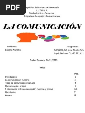 1 p r o l o g o h u m a n a... • el pensamiento se apoya constantemente en el lenguaje. La comunicación y su proceso. No es necesario que toda trasmisión de información sea consciente, voluntaria y deliberada de hecho, cualquier comportamiento en presencia de otra persona. Oct 18, 2021 · grafica de comunicación. La comunicación humana es un proceso continuo de relación, que engloba, en la mayoría de los casos, un conjunto de formas de comportamiento, a veces, independientes de nuestra voluntad. Los tipos de comunicación incluyen intrapersonal, interpersonal, pequeños grupos, pública y masiva.. Existen una serie de ideas previas sobre esta relación: